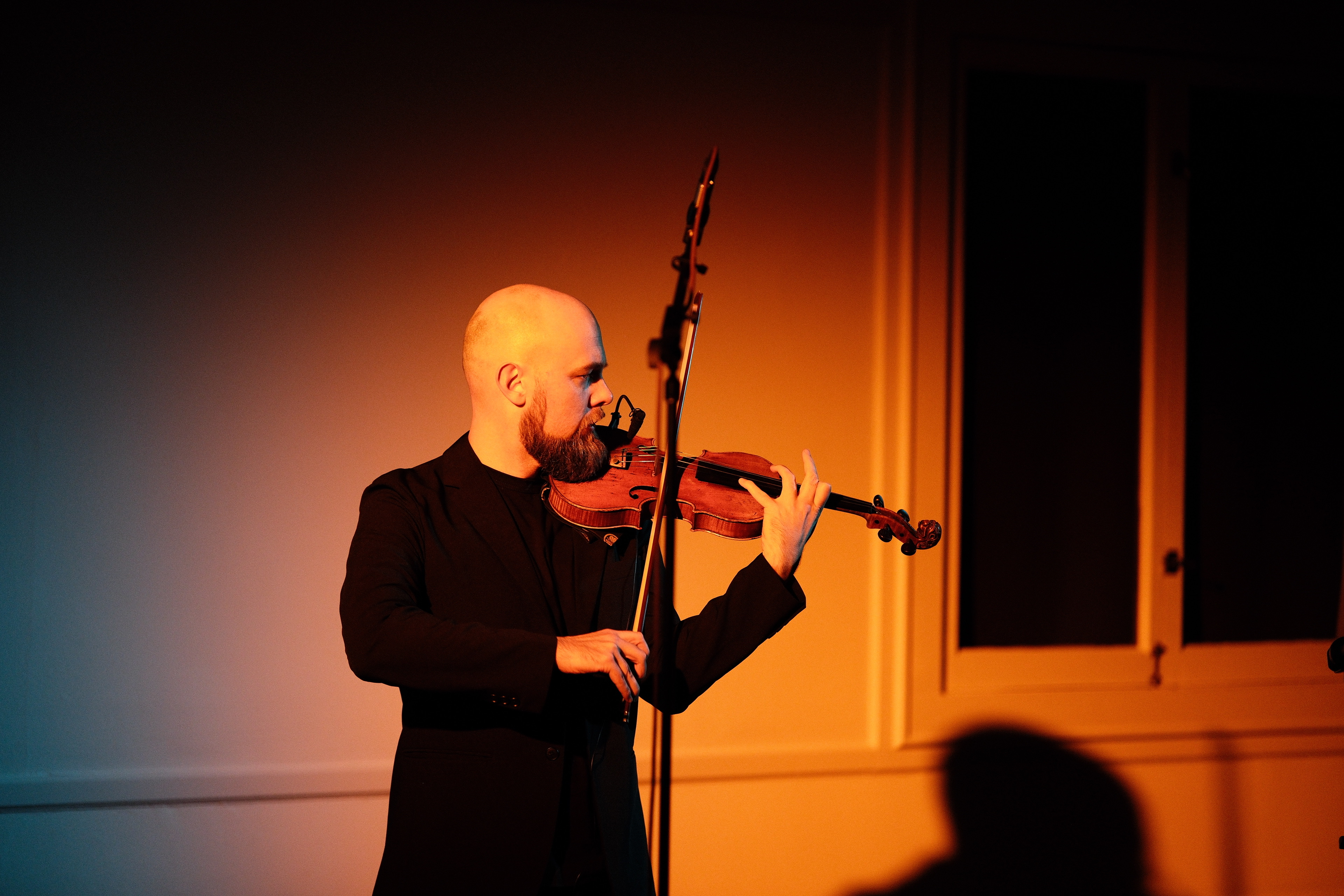 Modney is a composer and violinist working at the nexus of composition, improvisation, and interpretation. A “new-music luminary” (The New York Times) hailed as “one of today’s most intrepid experimentalists” (Bandcamp Daily), Modney is a foremost interpreter of adventurous contemporary music, and has cultivated a holistic artistic practice as a composer, solo improviser, bandleader, writer, and collaborator. A highly detailed relationship to sound production on the violin is foundational to Modney’s creative practice, with a particular interest in complex timbres, Just Intonation, and in exploring the perceptual space between improvisation and notation.